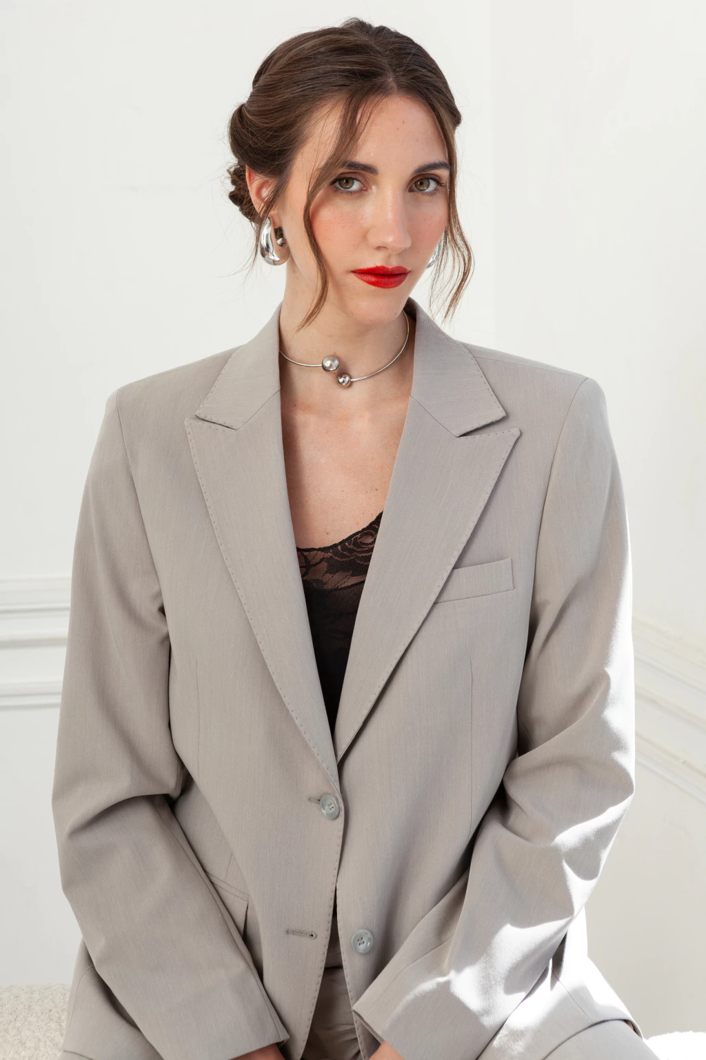 Confeccionado con una moldería diseñada para realzar tu figura, este ambo ofrece una silueta armoniosa y sofisticada que te hará destacar con distinción y buen gusto. Además, su interior cuenta con un delicado pespunte, reflejo del cuidado artesanal y la calidad que definen cada detalle de nuestra confección.